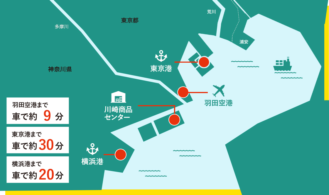 東京港・横浜港・羽田空港へのアクセスが良く、