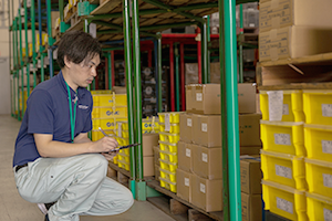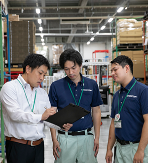 貴社ご担当者より、メール、FAXで入庫指示をいただきます。仕入れ先から東亜物流の倉庫に商品が届くと、いよいよ業務開始です。