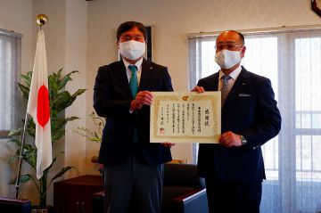 令和3年4月21日、江戸川区長・斉藤猛様がご来社され、江戸川区の新型コロナウィルス感染防止対策に貢献するため寄付をさせて頂いたことを評し、感謝状を拝受すると共に今後の対策について意見交換を行いました。未だ終息の見えない新型コロナウィルスですが、地域貢献に寄与すべく、様々な活動に引き続き取り組んで参ります。
