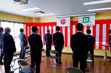 社長より「新型コロナウィルスが拡大を続けていますが、必ず終息する時が来ます。終息後にいち早く活動をするために、一日一日を大切にして仕事に励んで頂けたらと思います。【転換超克】の名の通り、一致協力し団結して苦難を乗り越えましょう。」と祝辞を頂きました。