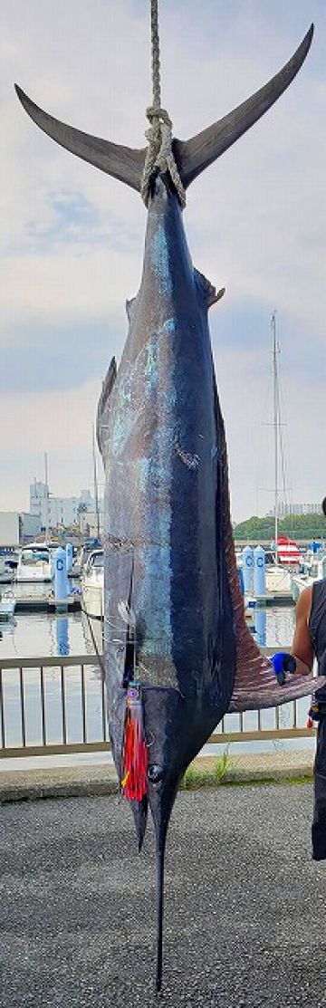 バーベキューでは、ジョニー船長が、先日伊豆大島で釣り上げたカジキマグロ(全長3m)を使った「竜田揚げ」が振舞われ、参加者に好評でした。