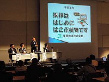 このパネルディスカッションには、当社を含め4社が参加しましたが、「物流業界を取り巻く現状の課題と勝ち残るために何をすべきか」というテーマについて、各社の取り組み事例が紹介されるなど活発に討議されました。