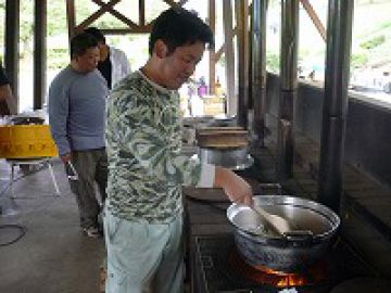 二日目は、ラジオ体操で前日の筋肉の疲れをほぐした後、前日から腕によりをかけて仕込んでおいた