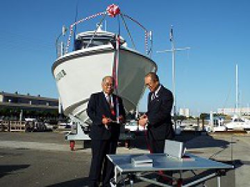 初の航海を祝っているかのような晴天に恵まれ平成28年10月15日、浦安マリーナでクルーズ船進水式を行いました。