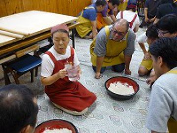その後、そば打ち体験を行い、エプロン姿にならないであろう参加者も、普段の姿から見られない体験をすることができました。