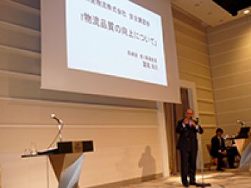 続いて品質管理責任者より物流品質の向上について、事故防止委員会より事故の起こりやすい場面とその注意事項などについて、どちらも当社の実情に則した講義が行われました。その後燃費向上・車両整備・環境整備・安全衛生の各委員会活動報告が行われ、出席者に対する講習内容の確認テストをはさみ、今回も小岩警察署交通課様より交通安全に関する映像視聴と講話を、重ねて小岩警察署組織犯罪対策課様より、昨今社会問題化している危険ドラッグについて、貴重なお話を頂戴いたしました。