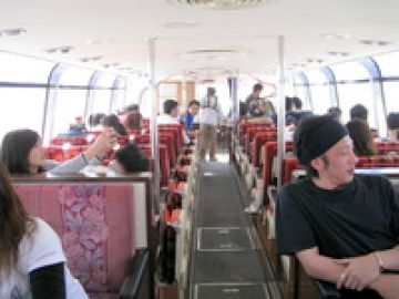 前回のクルージングは少人数にわかれての乗船でしたが、今回は参加者が増えたため、特別に70人乗りの水上バスをチャーターして、全員で乗船!