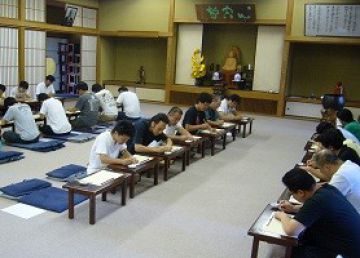 虫の音しか聞こえない、静かで山深い場所で黙々と座禅・写経・作務(清掃)に取り組みました。