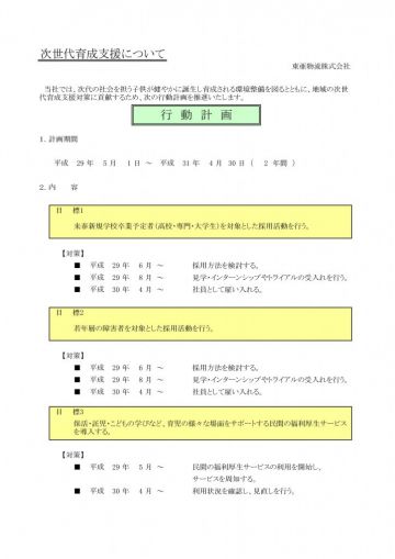 ニュース - 次世代育成支援行動計画を更新しました|東亜物流株式会社