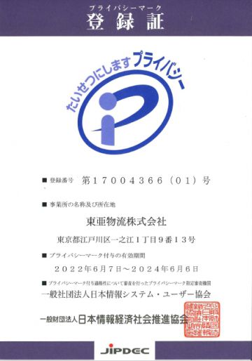 2022年6月7日付で、一般財団法人日本情報経済社会推進協会(JIPDEC)から「プライバシーマーク(Pマーク)」の認定を取得いたしました。
