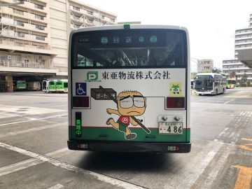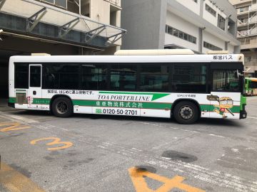 この度、都営バスと契約し、当社のカラーやロゴ等をラッピングした路線バスを走らせ始めました。 こちらは江戸川区のリーディングカンパニーとして、物流業だけではなく、一般の方々にも更に弊社の事を認知していただく為の広報活動の一環として行っております。 東京都内で2台、同様の車両が走っていますので、お見かけしましたらどうぞよろしくお願いします。 PS「ふんどしを触れば幸せにはなれる」という事は多分ないと思うので危険な行動はどうかお控えください。