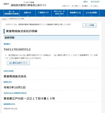 ※上記登録番号は国税庁WEBサイトの「適格請求書発行事業者公表サイト」にてご確認頂くことができます。