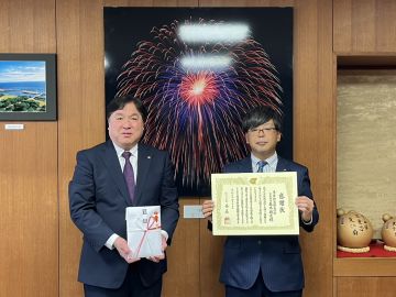 令和6年4月15日弊社が本社を構える江戸川区への区政の発展に貢献する為、本年もご寄付をさせて頂き、斉藤区長より直々に感謝状を拝受致しました。本年で5期続いての寄付になります。斉藤区長が一貫して目指されている「誰もが安心して自分らしく暮らせるまちづくり」は、弊社の経営理念である「顧客満足=会社発展=社員の幸せ」に繋がる部分もあります。今後とも弊社は、地元である江戸川区に貢献する事で、社会的責任を果たしていきたいと存じます。