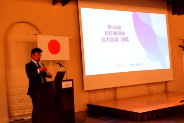 第三部では「個人発表会」と題し、今回昇任した9名の自己将来像の発表から始まり、経営企画本部長から「組織内におけるコミュニケーション」の講義の後、事前課題として出していた「自分成長ノート」という自己分析や、各々考える「成長とはなにか?」を個人ごとにどう捉えて実行に移すのか記入したノートを発表し合いました。