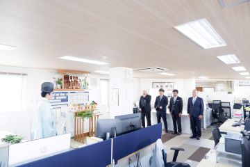 創業以来欠かさず行ってきた神事として、当社の創立記念日(6月28日)を迎えるにあたり、新小岩厄除香取神社の神主様をお招きしてご祈祷をいただき、役員および各拠点責任者参加のもと商売繁盛・安全祈願を行いました。