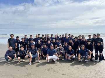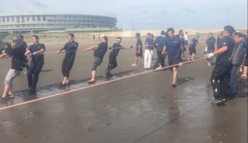 1日目はまず、九十九里の海岸にて、地引網体験を通じてチーム力の向上を図りました。