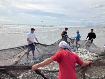 波風が強い中ではありましたが、力を合わせて網を引き大漁の「こはだ」の引き揚げる事ができました。