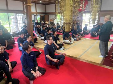 昼食の後、「智弘院」にて座禅修行を行い、各々が自己を客観視する事で目的意識の醸成を図りました。