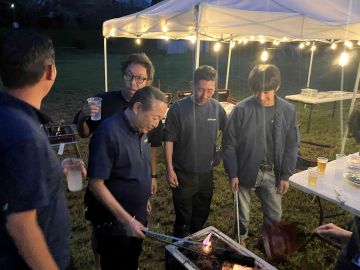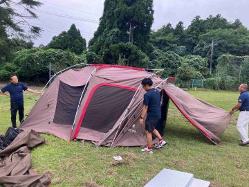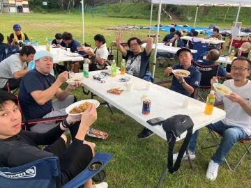 その後、廃校を利用したキャンプ場に移動し、テント設営からBBQを取り入れた夕食と共に、各々が夜中まで懇親を深めました。