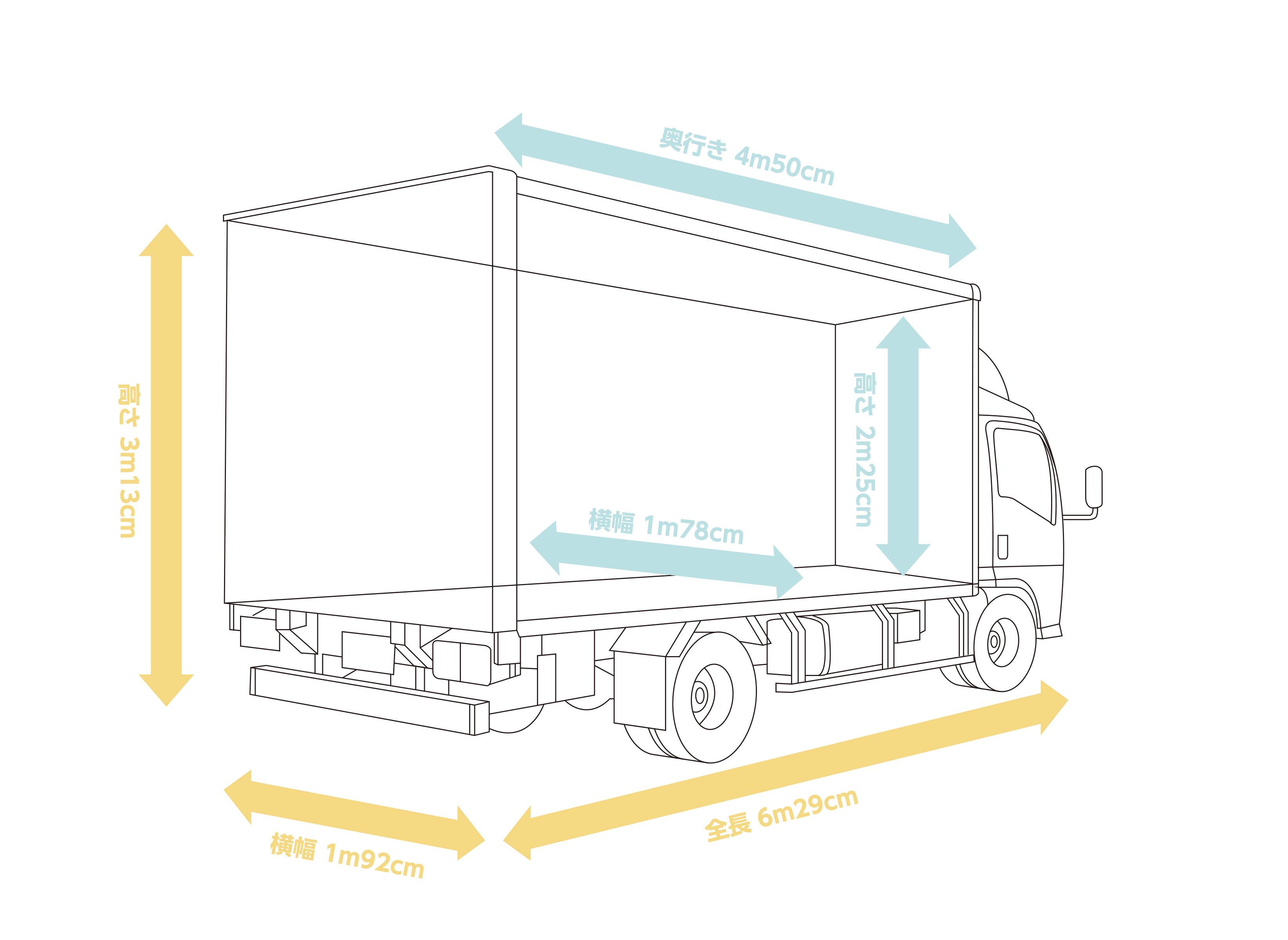 各車種の荷室寸法をご確認いただけます。お荷物のサイズに合った車種をお選びください。
